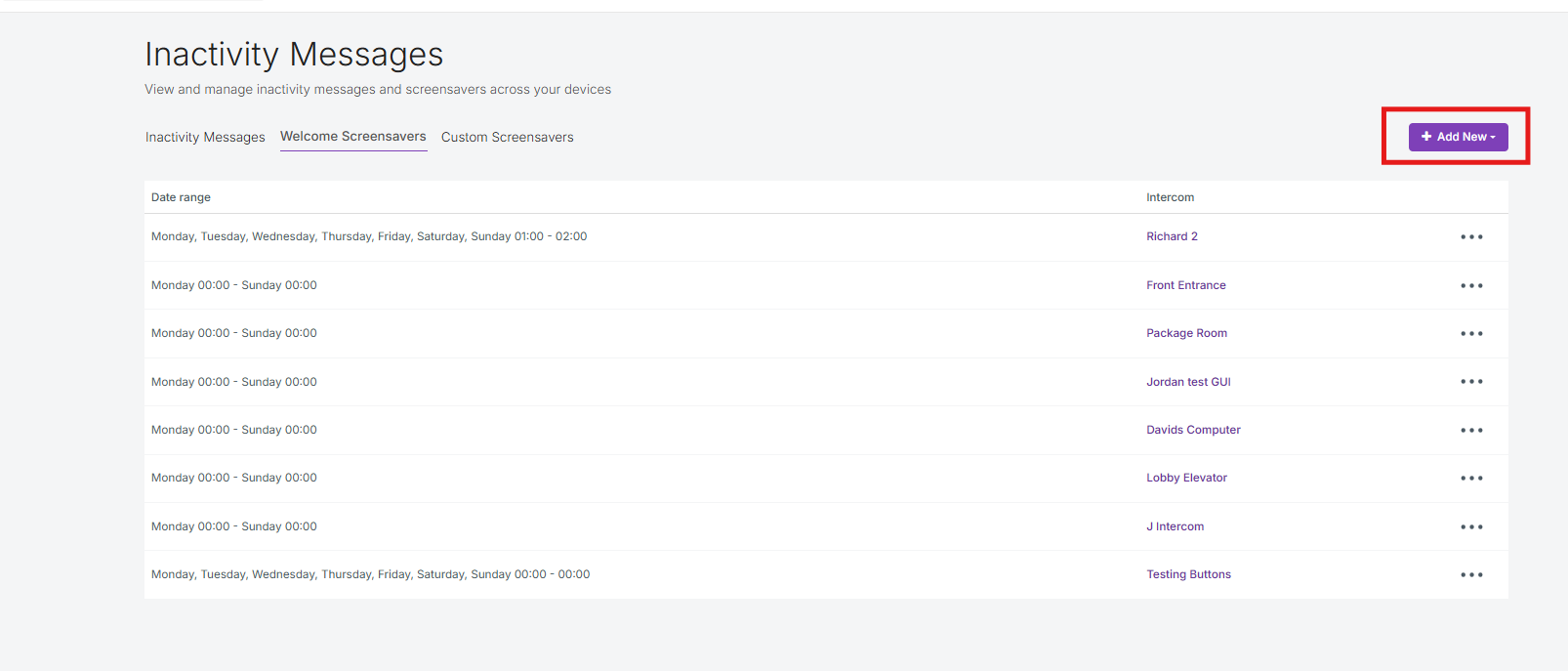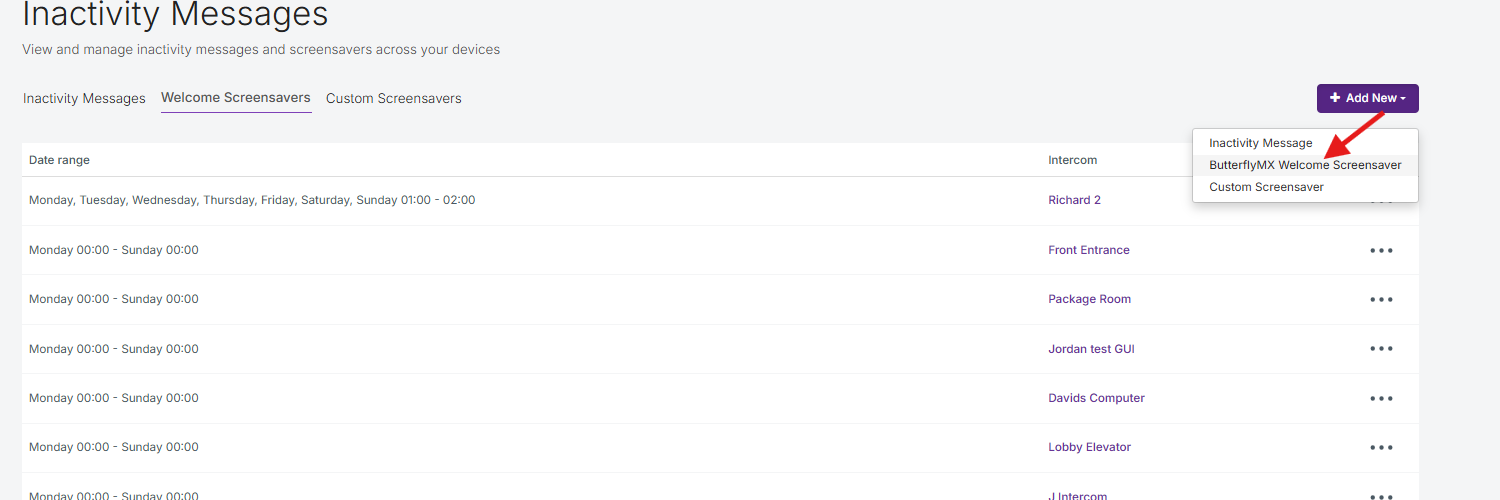 Note: If there is already a custom screensaver or inactivity message set on the intercom for the same time period, the ButterflyMX Welcome Screensaver will not be shown.