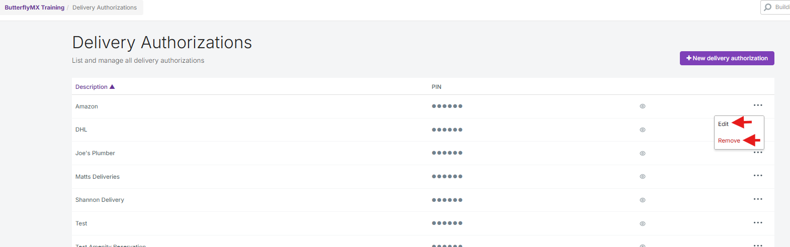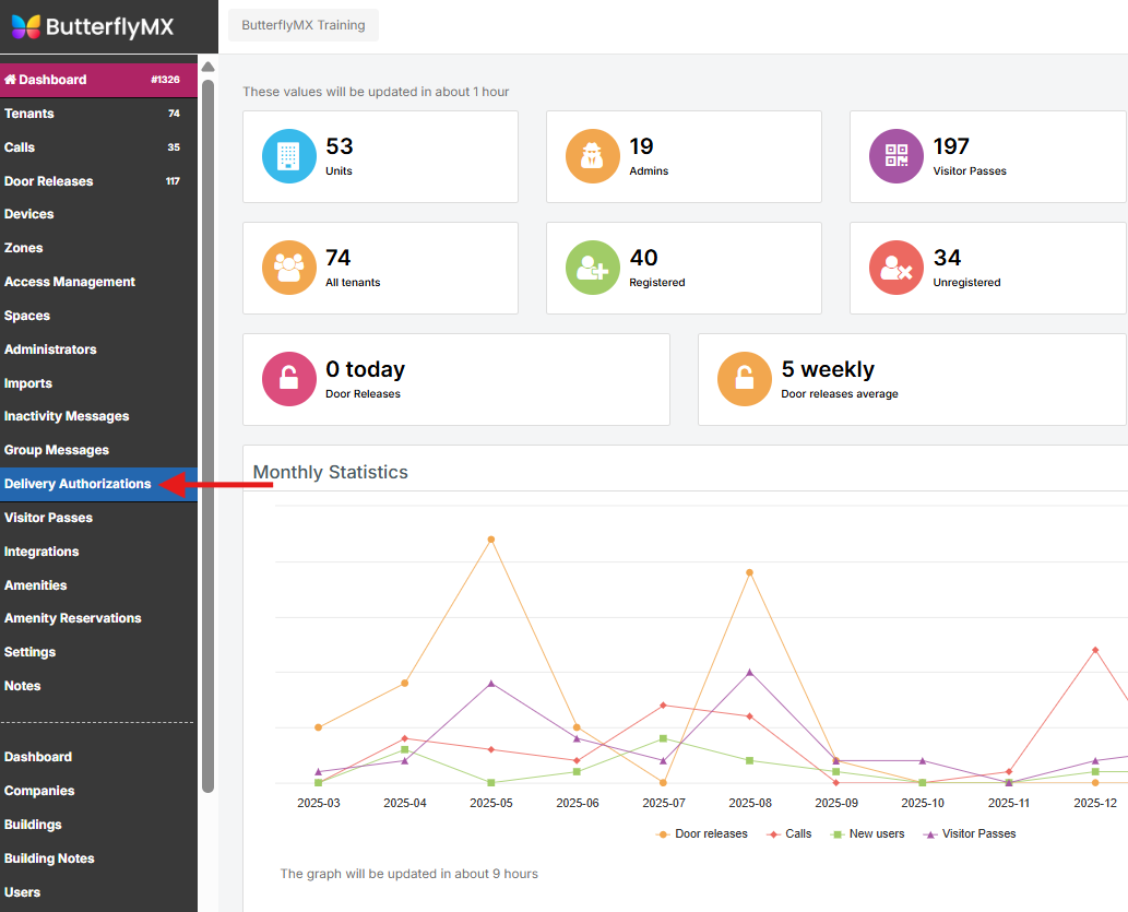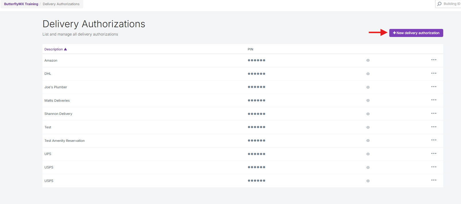 - Open the ButterflyMX OS and click ‘Delivery Authorizations’
