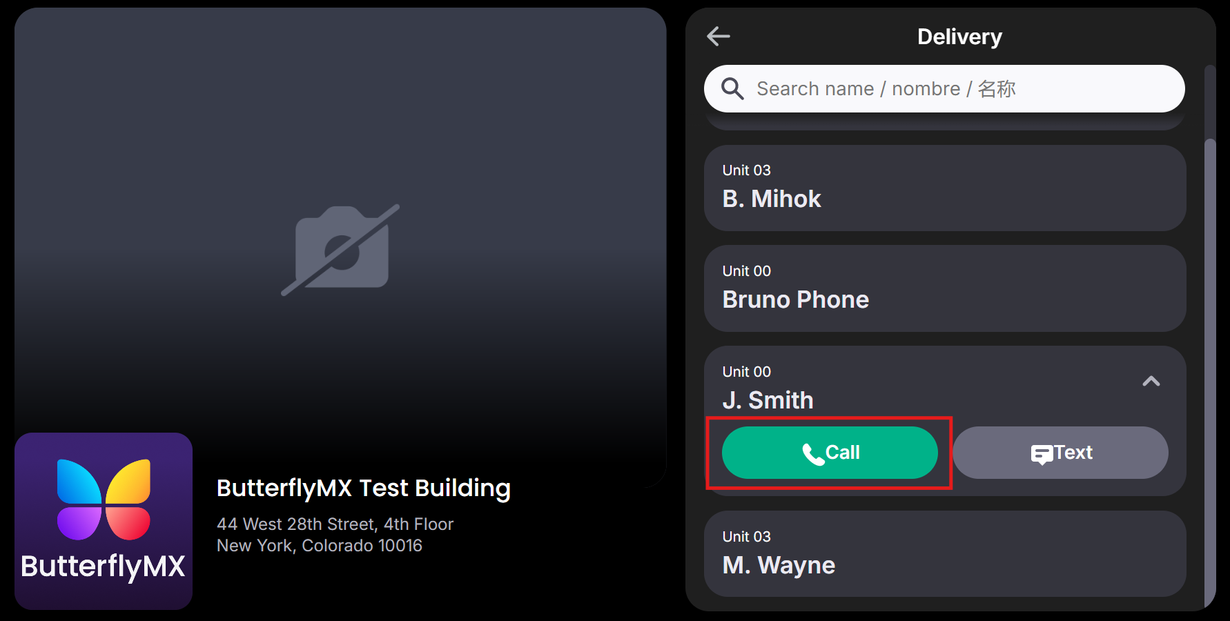 - If they do not have a PIN, they can select 'Search Directory' to find and click on the name and press 'Call' to call the resident directly.