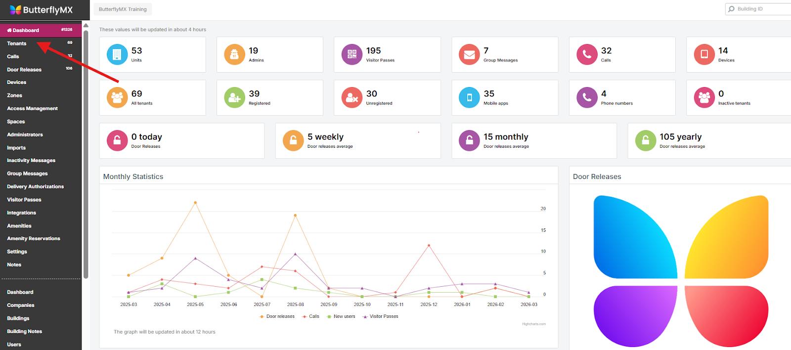 Check out our property manager resources, including training guides and videos that demonstrate how to use essential ButterflyMX features, such as managing admins, setting door PINs, and navigating the property management dashboard.