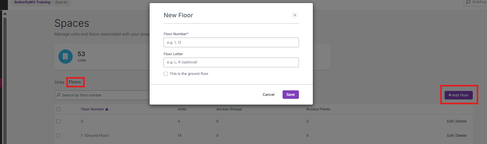 When setting up ButterflyMX at your property, one of the first things you will need to do is add your building’s units and floors into the ButterflyMX OS.
