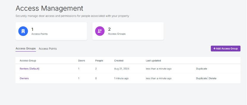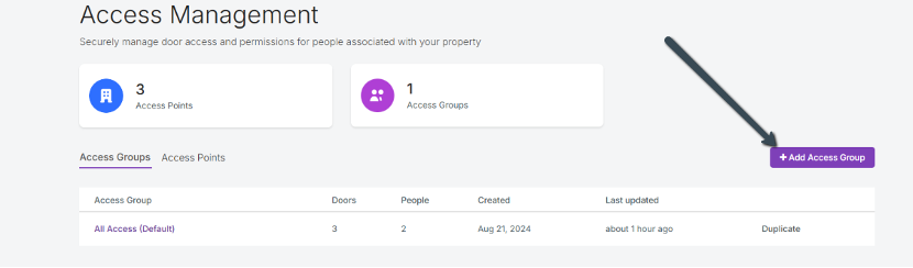 - Click the + Add Access Group button on the right side of the Access Management page.