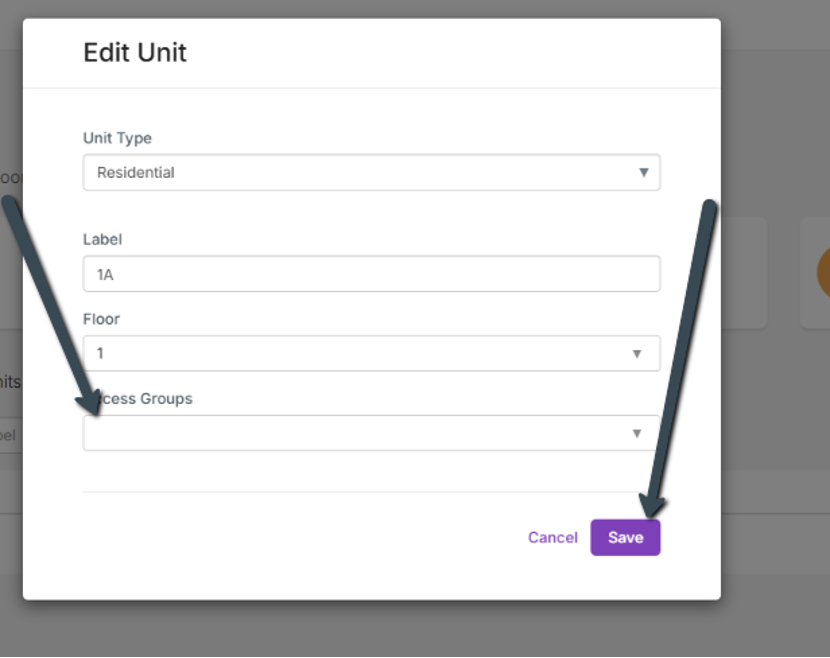 If you want all current and future residents of a unit to be assigned to a specific Access Group, you can set this up at the unit level. Any new user added to that unit will automatically be placed in the designated Access Group.