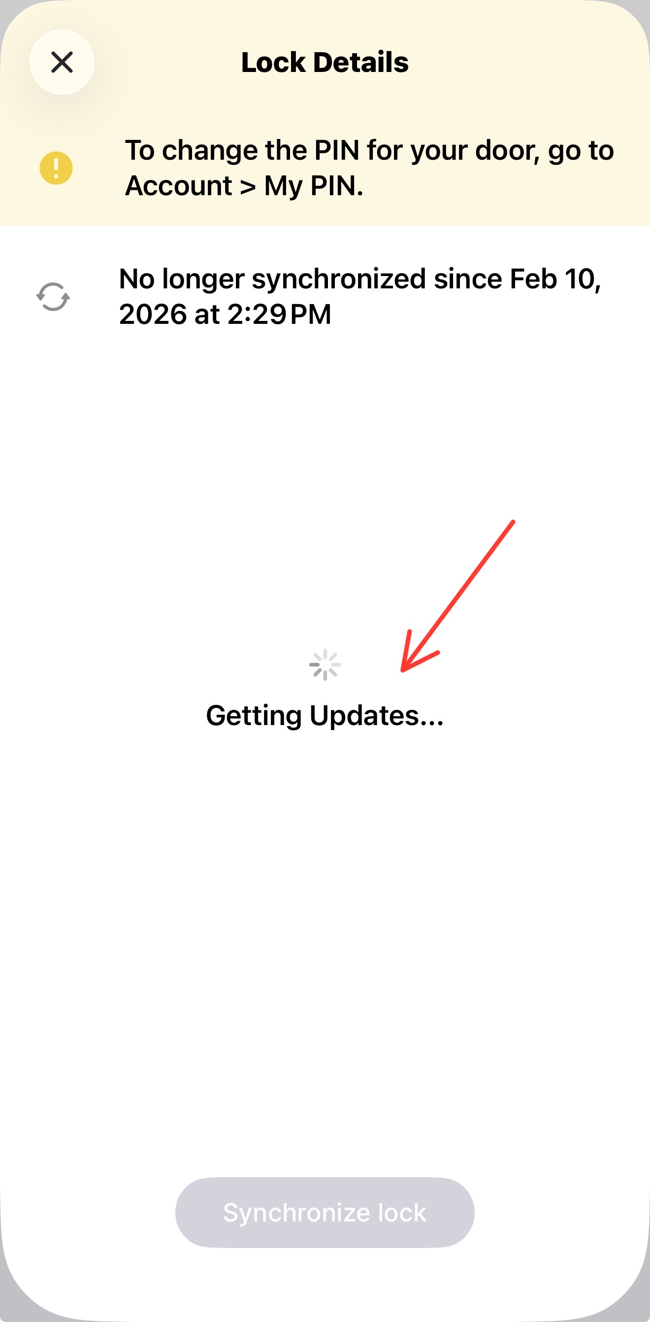 When the lock details page loads, it will start downloading updates from the cloud. The screen will show "Getting Updates" during this process: