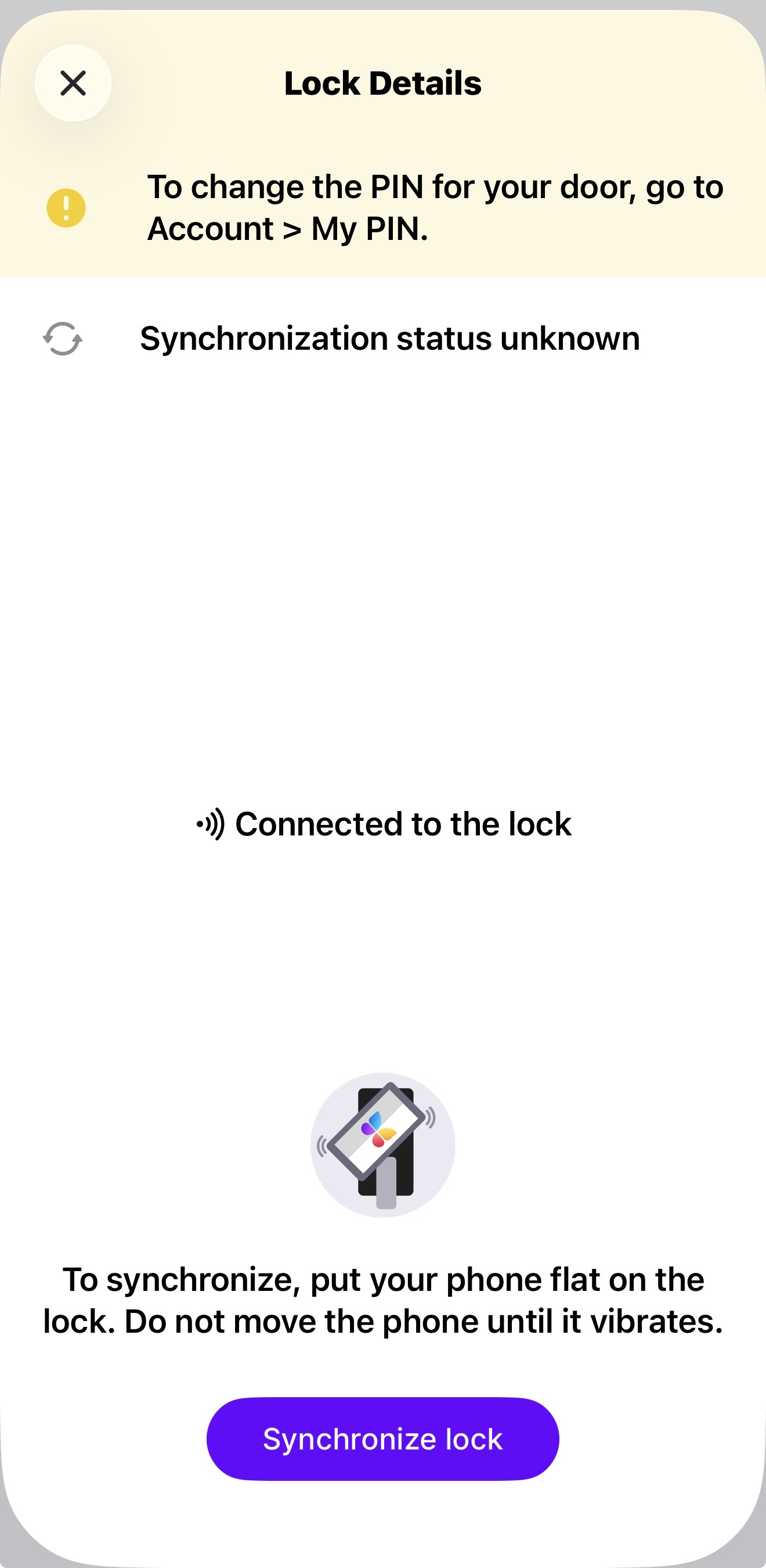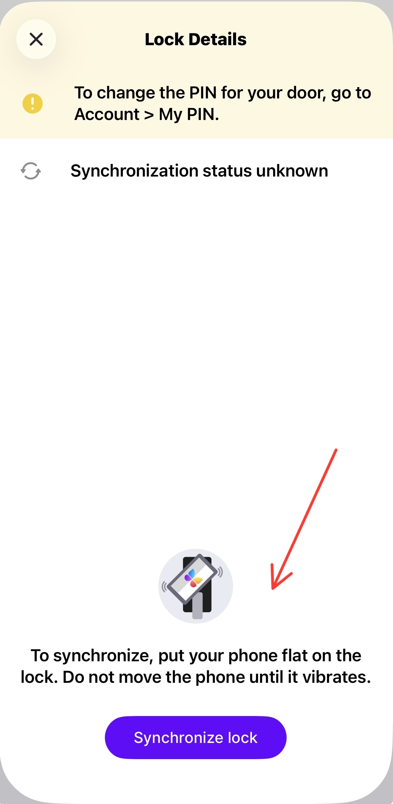 - Place your phone flat on the lock to synchronize. Keep it still until it vibrates.