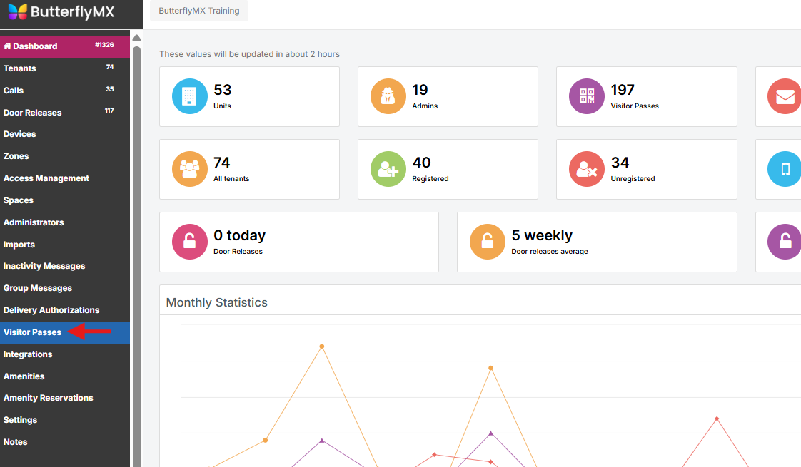 En su edificio equipado con ButterflyMX, sus residentes pueden crear, emitir y revocar Pases de Visitantes para sus invitados de confianza, como familiares o paseadores de perros. Como administrador de propiedad de ButterflyMX, puede monitorear esos Pases de Visitantes activos. Esto puede mejorar la seguridad en su propiedad al permitirle ver quién tiene acceso a su edificio en todo momento. Lea este artículo para aprender cómo gestionar los Pases de Visitantes como administrador de propiedad.