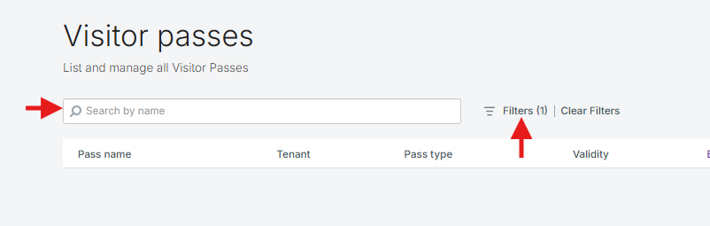 Si vous gérez une longue liste de passes, utilisez la barre de recherche en haut de la page pour trouver rapidement des passes spécifiques