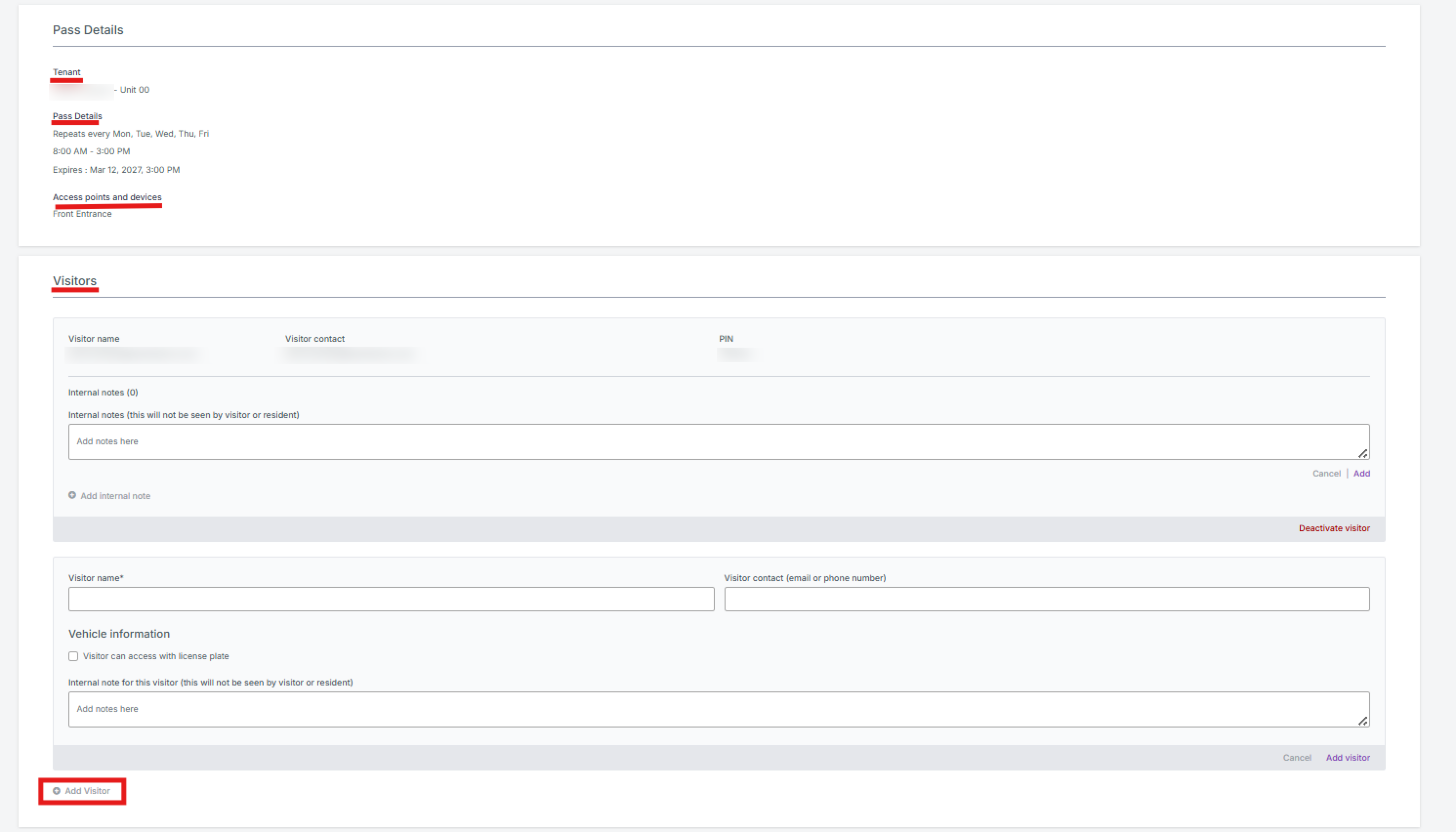 - Vous pouvez également ajouter des visiteurs supplémentaires sous le même passe visiteur directement depuis cette page.