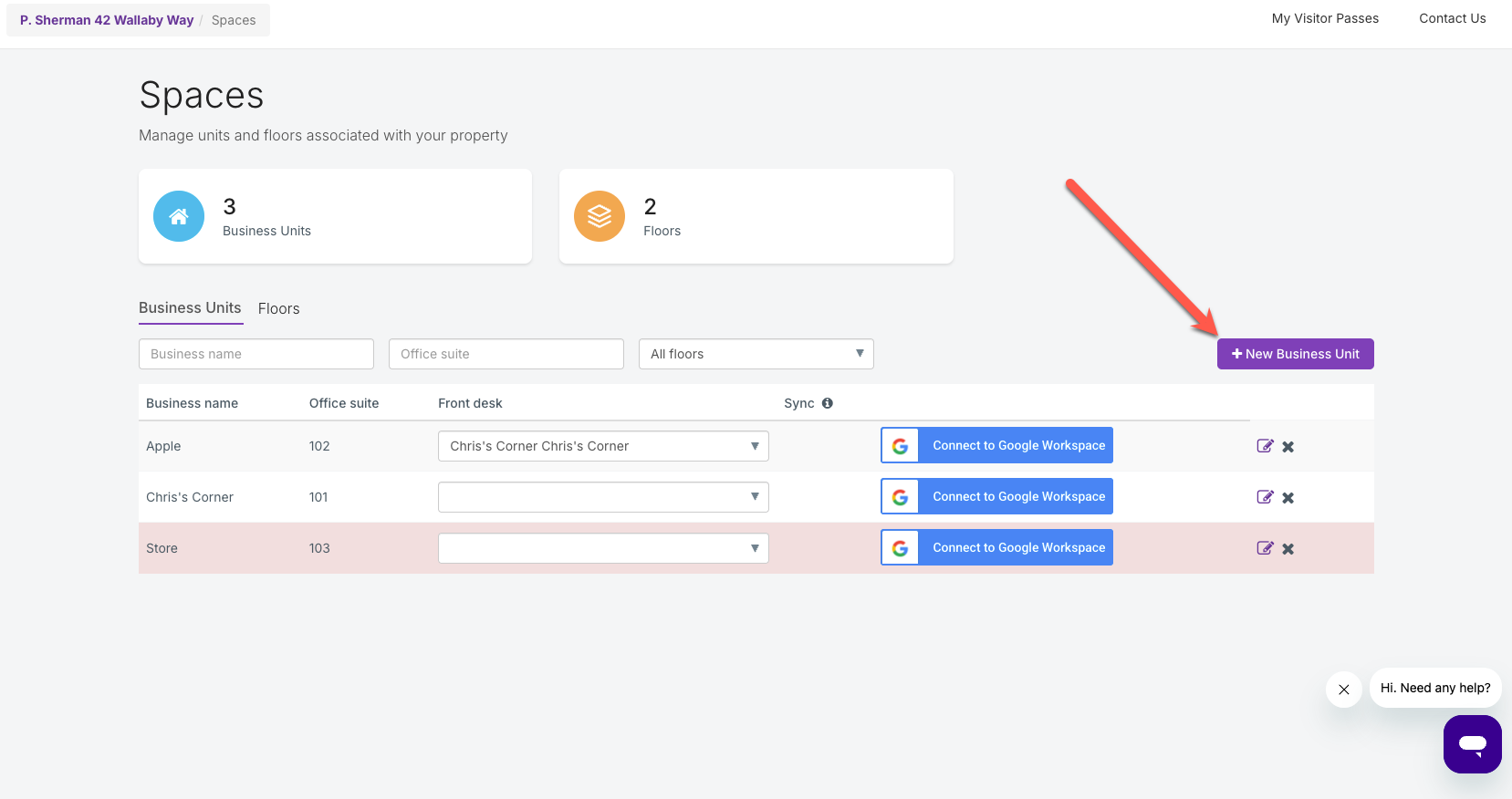 - Ensuite, ajoutez les employés à cette unité commerciale particulière. Vous pouvez ajouter manuellement des locataires individuels ou utiliser notre intégration Google Workspace pour synchroniser les informations de vos employés.